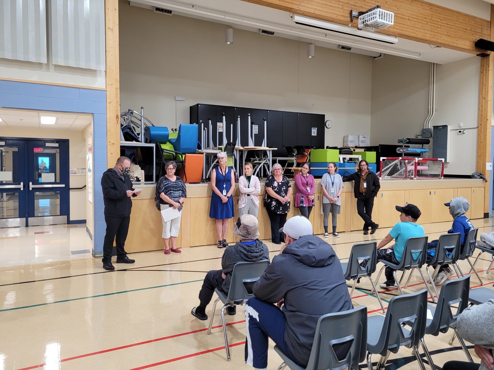 Les parents ont eu l’occasion de rencontrer les membres du personnel ainsi que Mme Elise Kenny, représentante du Club francophone du lac Supérieur. Conseiller Réal Deschatelets a également offert quelques mots aux participants en tant que parent, président du Club francophone du lac Supérieur et conseiller scolaire du CSDC des Aurores boréales pour le secteur Supérieur-Nord. Une visite de l’école a suivi.
