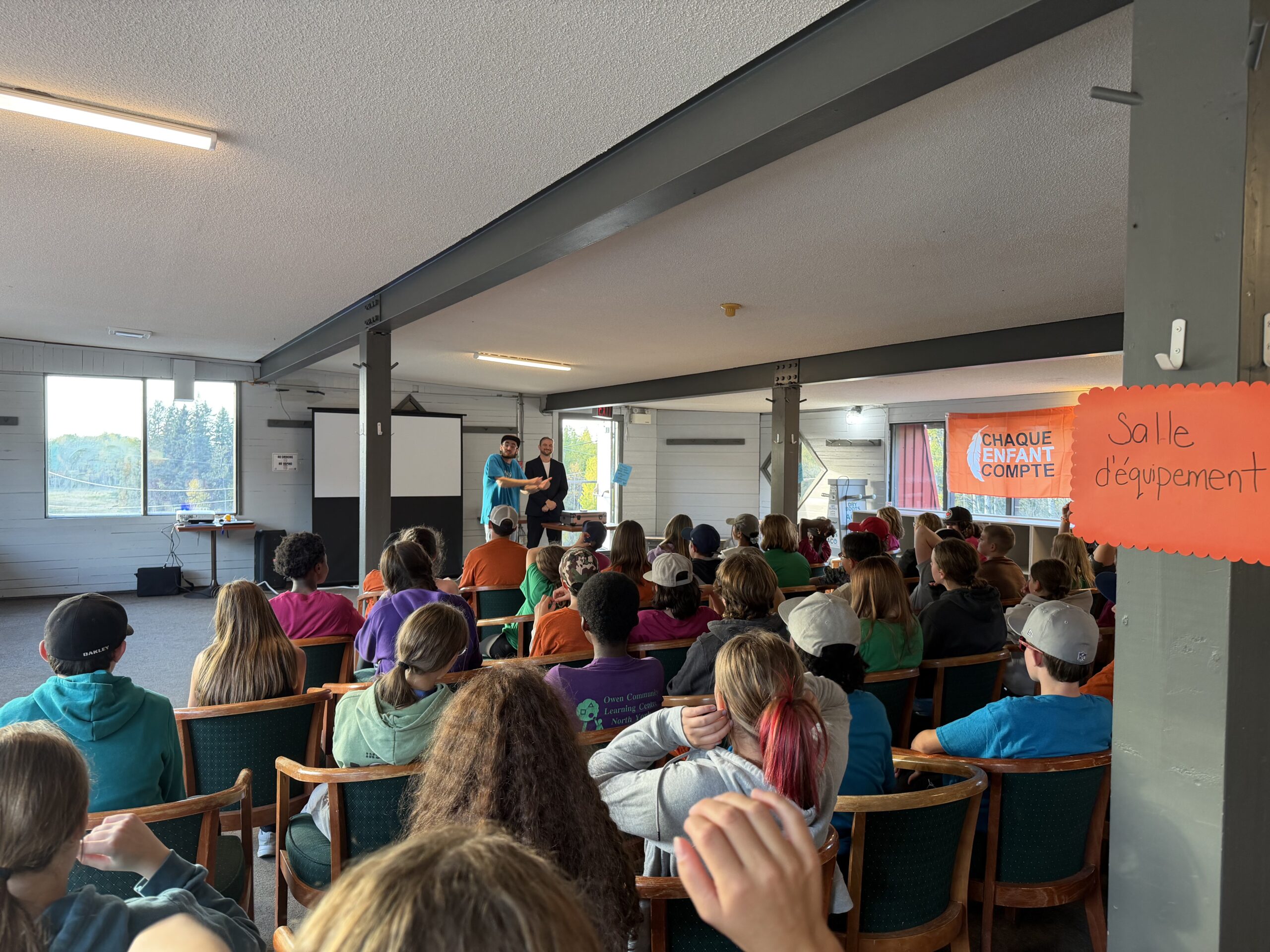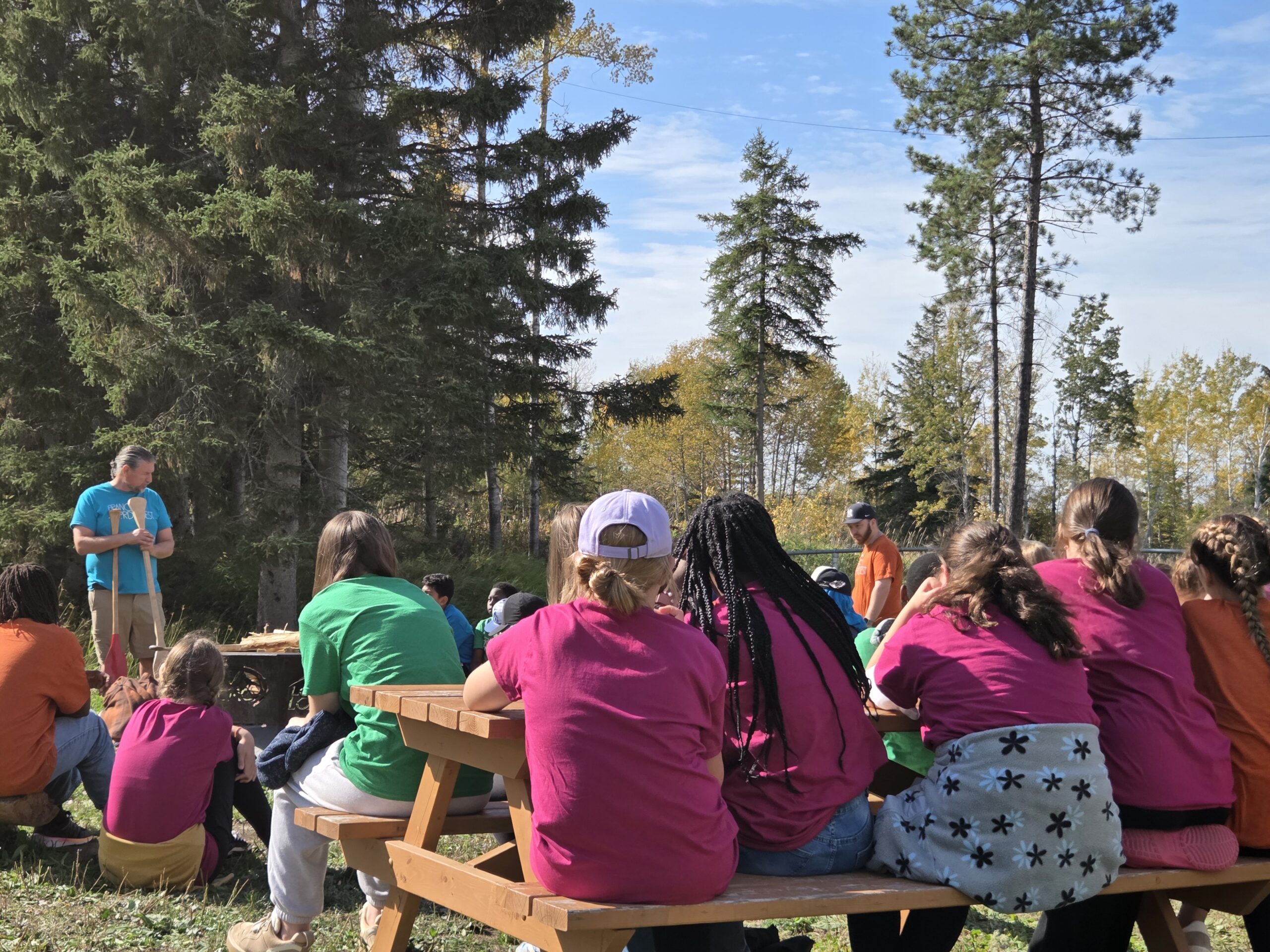 Les ateliers ont débuté par une immersion profonde dans l’éducation autochtone, guidée par le voyageur métis Christian Pilon. Les élèves ont pu se connecter à eux-mêmes à travers les mouvements et les pratiques des voyageurs autochtones. Ils ont également participé à la construction de pagaies en utilisant du papier à sabler et des morceaux de bois et à d’autres activités de collaboration, communication et coopération.