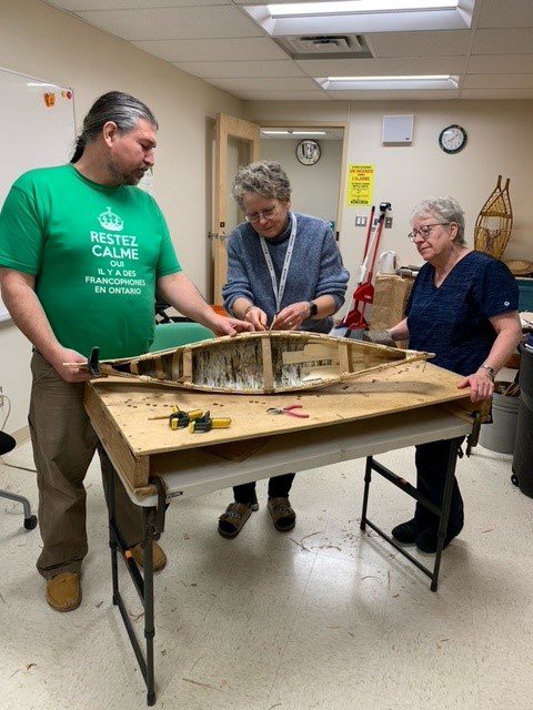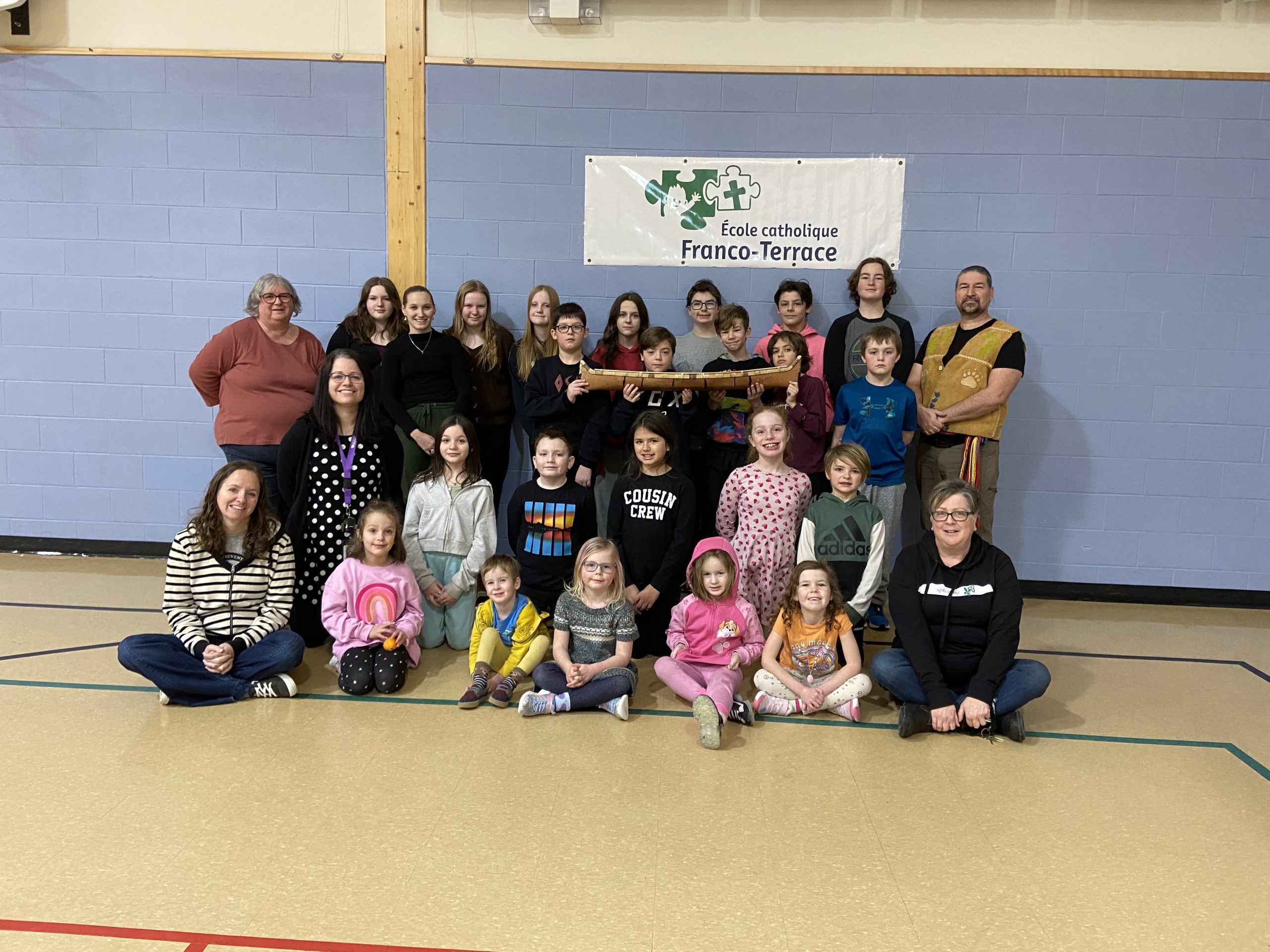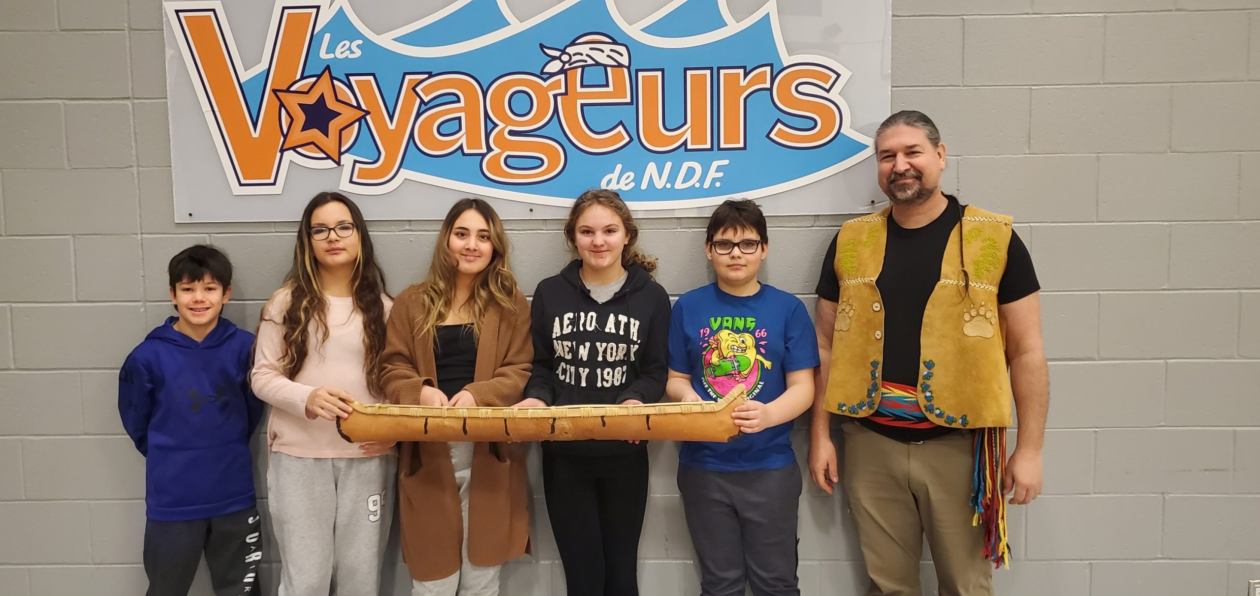 En janvier et février, Christian Pilon est parti à l’aventure dans notre région, s’arrêtant pour faire la rencontre de quatre écoles. Le voyageur métis franco-ontarien a offert un atelier d’une semaine sur la fabrication d’un canot d’écorce aux élèves et membres du personnel de l’École catholique Val-des-Bois (Marathon), l’École Immaculée-Conception (Ignace), l’École catholique Franco-Terrace (Terrace Bay) et l’École Notre-Dame-de-Fatima (Longlac).