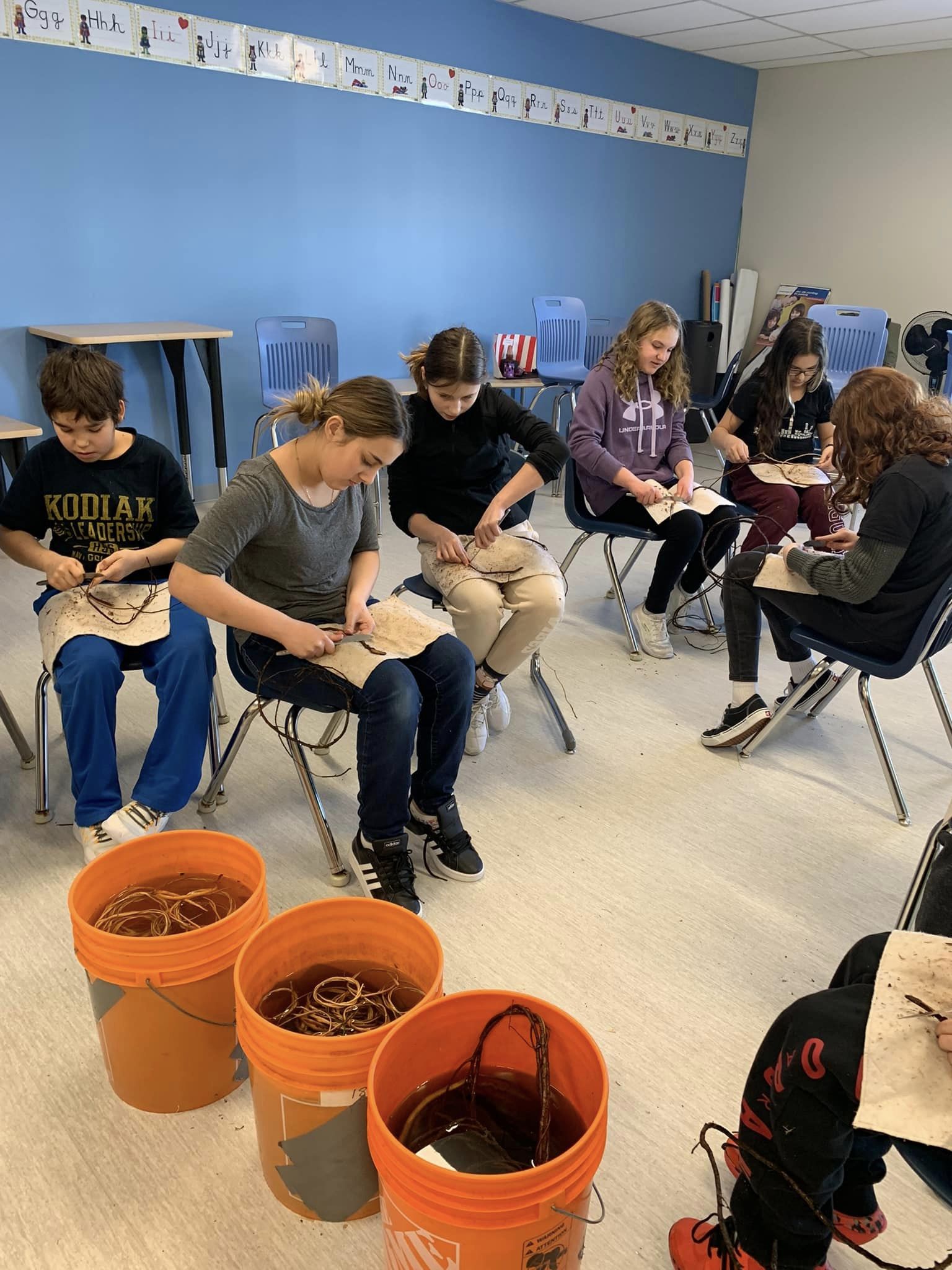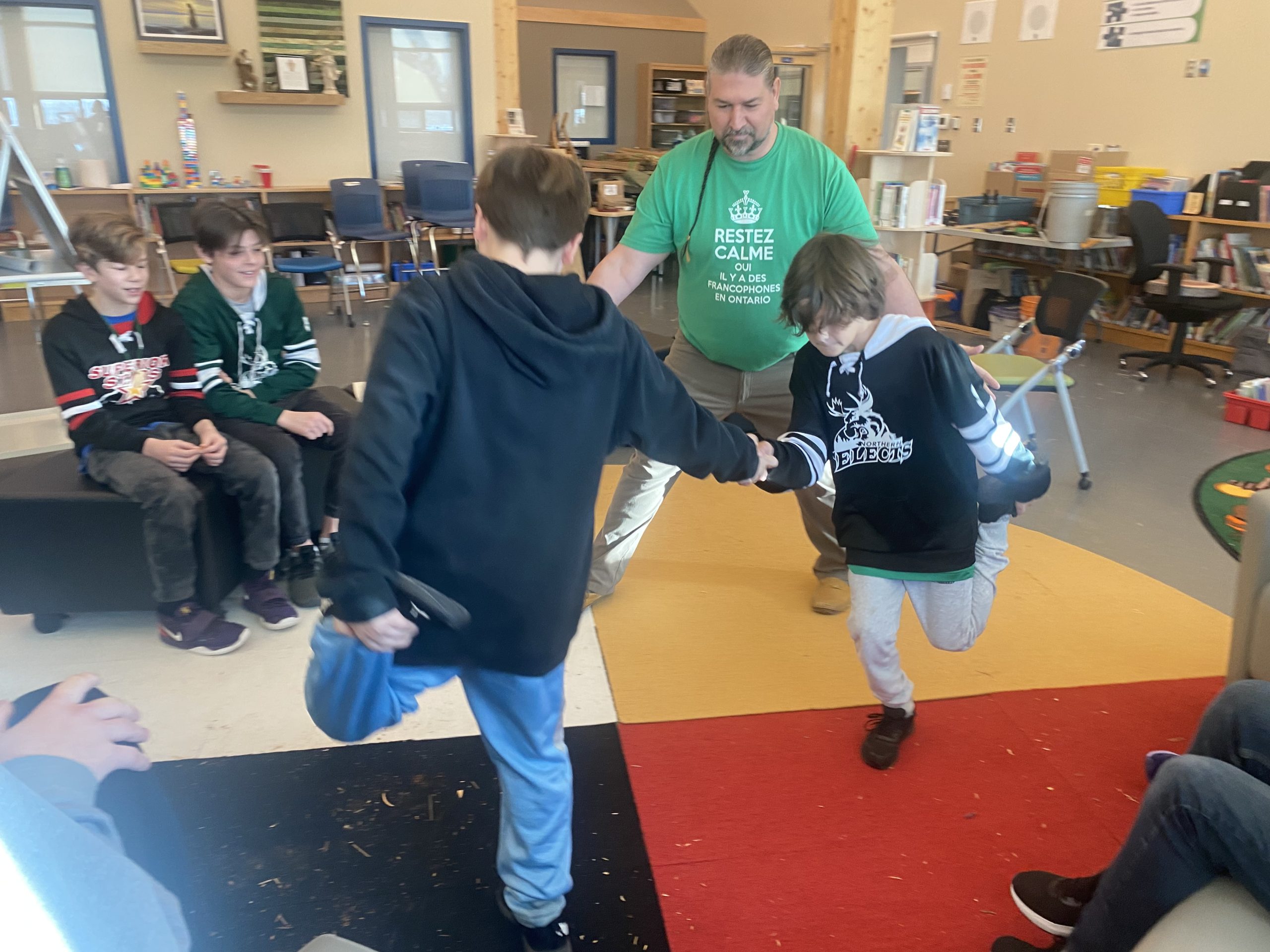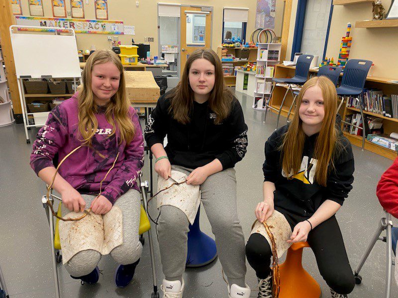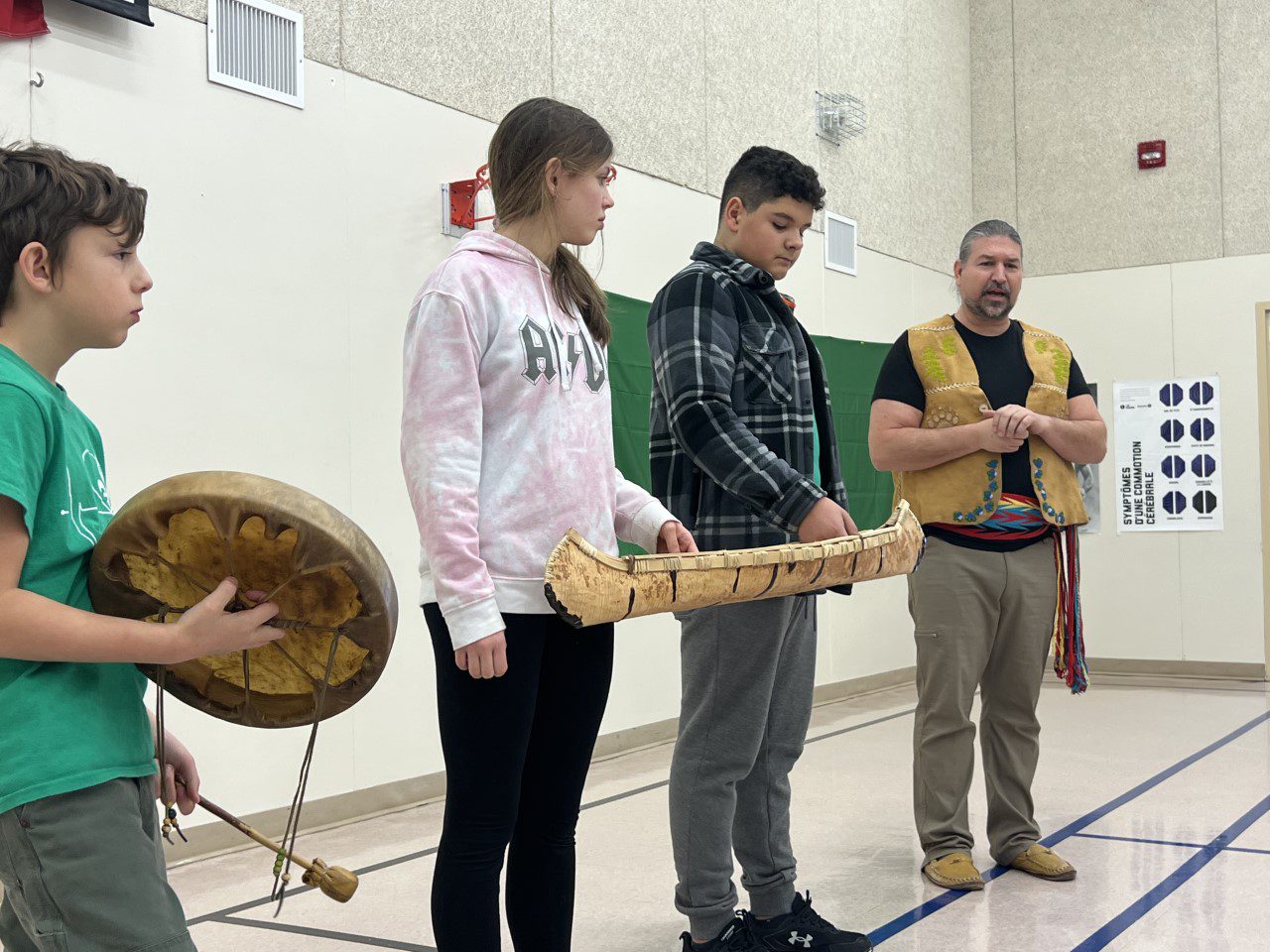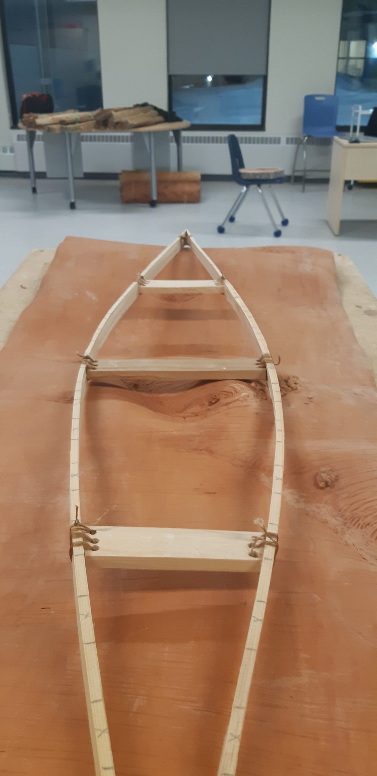 Cette expérience enrichissante a permis à nos élèves d’apprendre davantage sur la culture Franco-Métis, ainsi que les étapes culturelles et éducatives de la fabrication traditionnelle d’un petit canot d’écorce authentique. Les élèves ont choisi l’écorce, manipulé les outils, épluché et pris des racines pour attacher l’écorce au squelette du canot, et déposé les roches afin de stabiliser l’écorce. Lors du processus, Christian a partagé les enseignements liés à la confection d’un canot tels que les sept cadeaux et la roue de médecine.