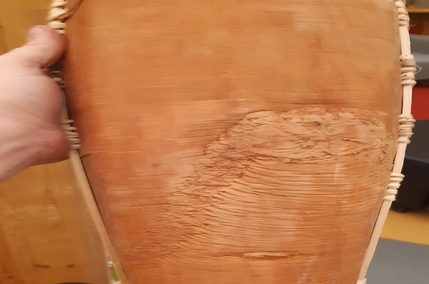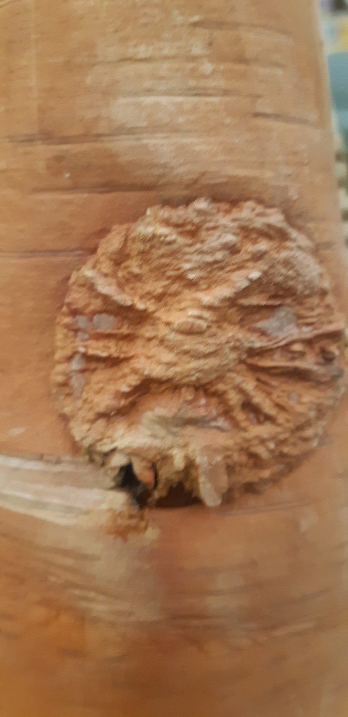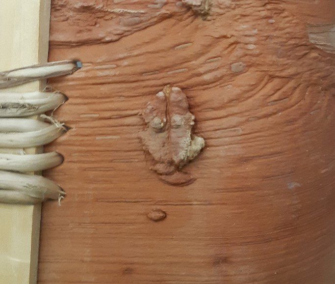 Christian explique que dans l’écorce, « on voit le soleil qui perce l’horizon, et un bateau qui nous rappellent l’importance d’aller à la rencontre et accueillir le soleil tous les matins. On le réalise vite quand nous avons des jours ou semaines à la fois sans la chaleur du soleil pour nous caresser le visage. On se doit de se prendre en main et se lever. On monte faire face aux défis et aux célébrations que nous avons chaque jour. »