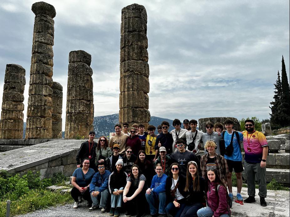 Après l’Italie, les élèves ont pris la route vers la Grèce, avec une première escale à Delphes, autrefois considéré par les Grecs anciens comme le centre du monde. Le site, chargé d’histoire et de spiritualité, a suscité un véritable coup de cœur chez les élèves. Ancien sanctuaire sacré dédié à Apollon, Delphes abritait le célèbre oracle où les dirigeants et les voyageurs venaient chercher des conseils et des prédictions.