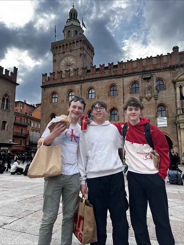 Le séjour a débuté à Bologne, ville historique du nord de l’Italie, souvent considérée comme la capitale gastronomique du pays. Réputée pour ses magnifiques rues médiévales, ses kilomètres d’arcades et sa richesse culturelle, la ville a offert aux élèves une première immersion mémorable… sans oublier sa cuisine exceptionnelle.